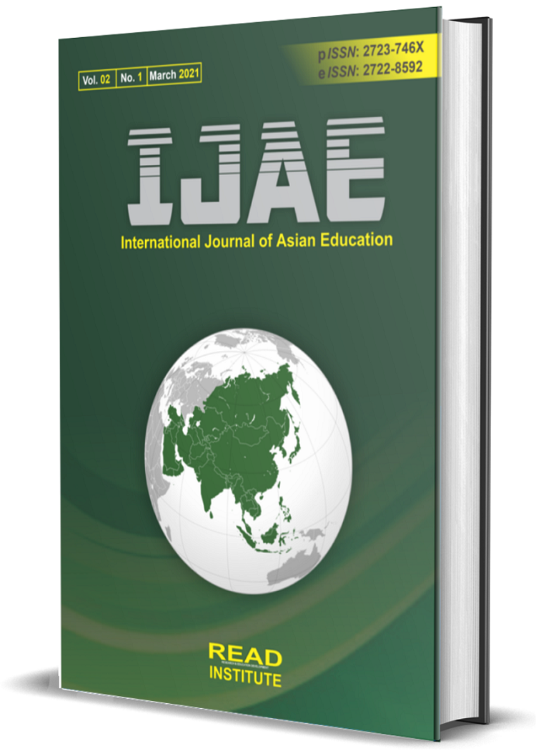 International Journal of Asian Education (IJAE) electronic ISSN: 2722-8592 (ISSN Letter Decree no: 0005.27228592/JI.3.1/SK.ISSN/2020.07), and print ISSN: 2723-746x (ISSN Letter Decree no: 0005.2723746X/JI.3.1/SK.ISSN/2020.09) is an open-access and peer-reviewed journal that is published by Research and Education Development (READ) Institute.